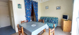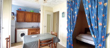SEJOUR avec une banquette lit 2 personnes. TV - CUISINE aménagée avec réfrigérateur, four, 2 plaques électriques, micro ondes, lave linge. - CHAMBRE séparée du séjour par portière rideau, un lit de 140. -SALLE D’EAU avec une douche, lavabo, WC.