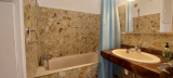 SALLE DE BAINS avec wc :carrelage au sol, lavabo, baignoire, wc.