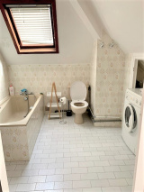 MEZZANINE/CHAMBRE(10.5m2, expo sud-est) : Lino au sol, un lit de 140, belle terrasse pleine vue mer. Commode rangement, penderie. ,SALLE DE BAINS MANSARDEE avec carrelage au sol, baignoire, lavabo, wc, lave linge.