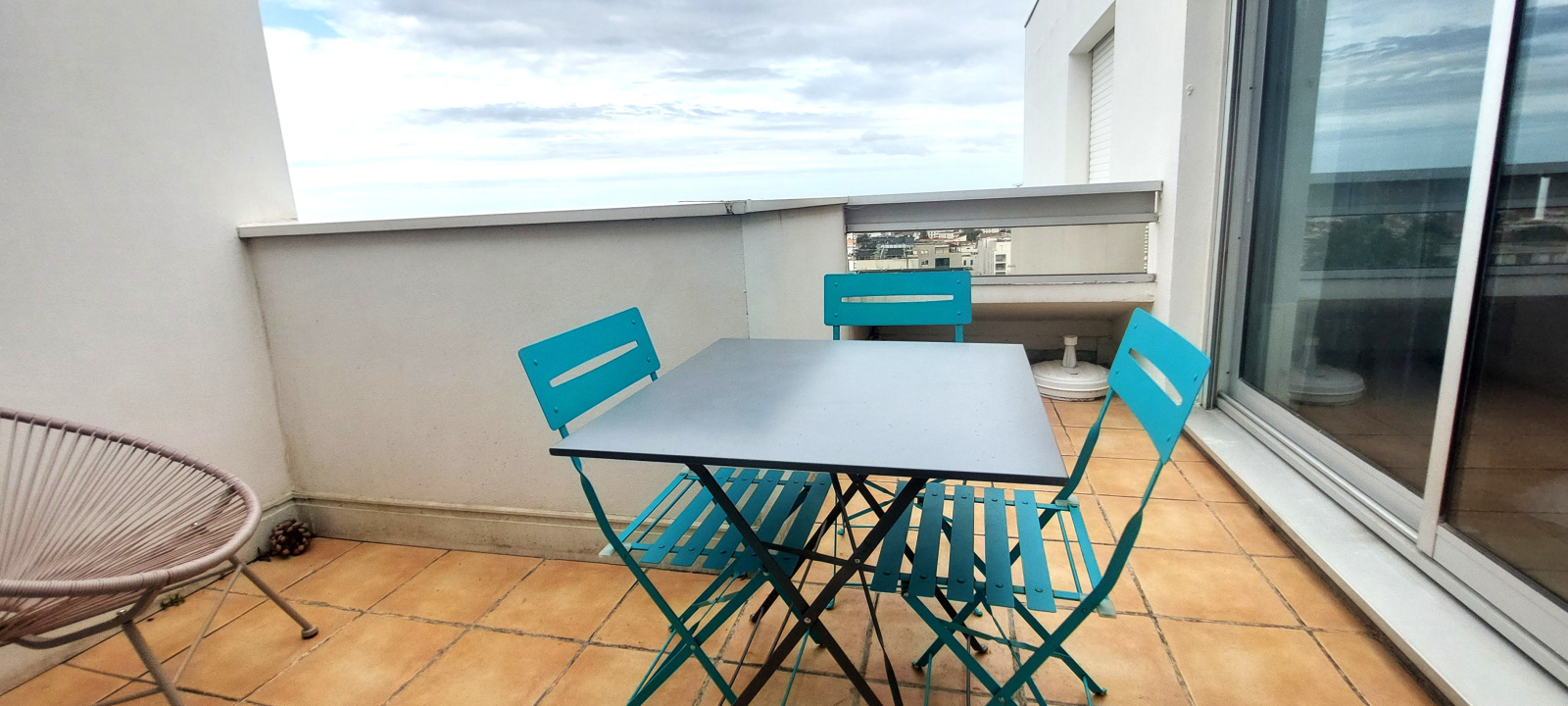 Ce logment vous offre: UN SEJOUR avec CLIC CLAC, TV. Séjour donnant sur une belle terrasse de 12 m2 idéale pour les petits déjeuners au levé du soleil !