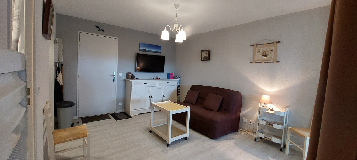 Il est composé: d'un SALON SEJOUR avec TV, canapé convertible, UNE CUISINE ouverte équipée d'un four, d'un micro-onde, d'un lave-vaisselle, lave-linge, réfrigérateur avec compartiment congélateur, plaque de cuisson à induction 3 feux, évier 1 bac, - D'UNE CHAMBRE avec parquet au sol avec un lit de 140, placard penderie - D'UNE SALLE D'EAU avec WC -