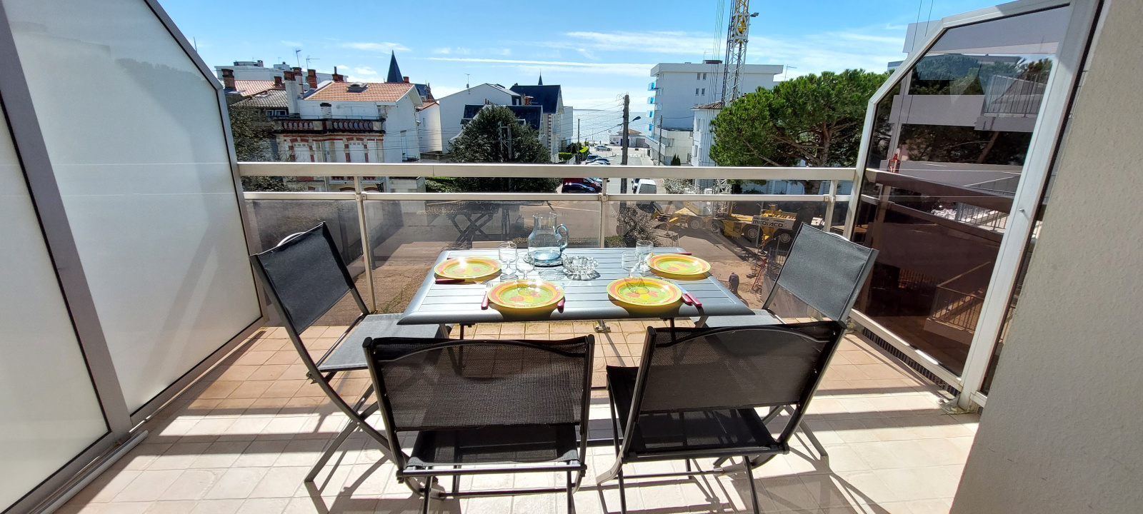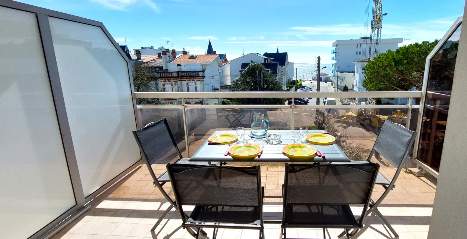 Belle terrasse équipée d'un store banne, salon de jardin et vue mer !