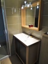 UNE ENTREE - CUISINE aménagée, lave vaisselle, réfrigérateur, plaque de cuisson 4 feux, four électrique, four micro ondes. - SALLE DE BAINS avec douche, lavabo, rangement, lave linge.