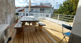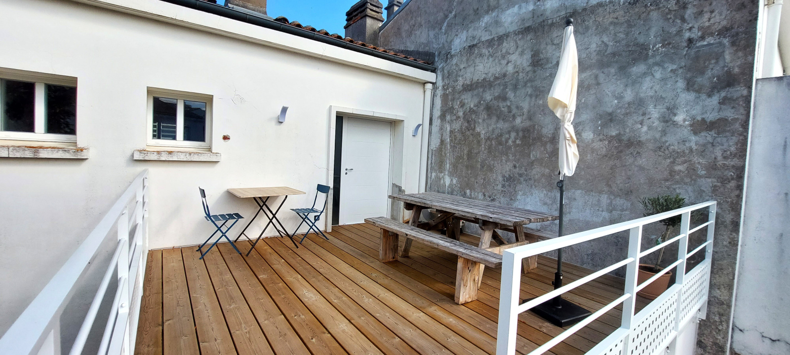 Grande terrasse avec salon de jardin + plancha. (possibilité de mettre les vélos à l'entrée)