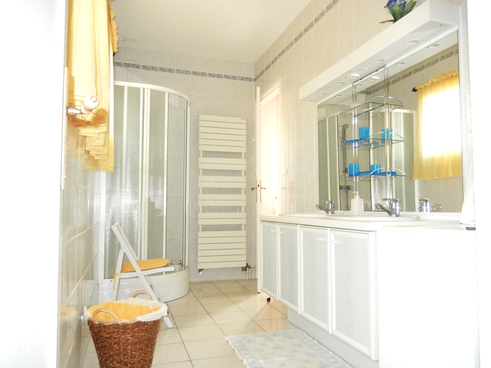 REF/ 1292 - 5 Personnes- , ,APPARTEMENT au 1er étage d’une maison de 2 appartements, ROYAN, à 450m de la plage de Royan, 450 m des commerces et 350m de la gare. , ,ENTREE dégagement. ,SEJOUR(15m2, sud-ouest + sud-est) porte fenêtre sur grande terrasse , TV, canapé. ,CHAMBRE(14m2, nord-est) : avec un lit de 140, armoire penderie. ,CHAMBRE(14m2, sud-est) : avec un lit de 140, armoire penderie. ,SALLE D’EAU :avec douche, lavabo avec double vasque, lave linge. ,CUISINE : four intégré avec plaque vitro, réfrigérateur + congélateur, micro ondes, lave vaisselle. ,WIFI , ,TERRASSE avec salon de jardin. Possibilité de rentrer la voiture dans le jardin. , , , ,