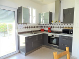 UNE ENTREE : SEJOUR AVEC COIN CUISINE, coin repas avec placard, coin salon avec banquette, TV. ,Coin cuisine avec accès sur terrasse, plaque 4 feux gaz de ville, four, évier un bac, hotte. ,CHAMBRE 1 : Parquet flottant au sol, un lit de 140, placard penderie. ,CHAMBRE 2 : Parquet flottant au sol, un lit de 140, placard penderie - UNE SALLE D’EAU : Cabine de douche, lavabo, wc, lave linge.