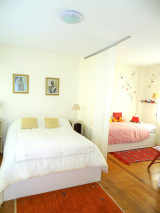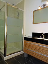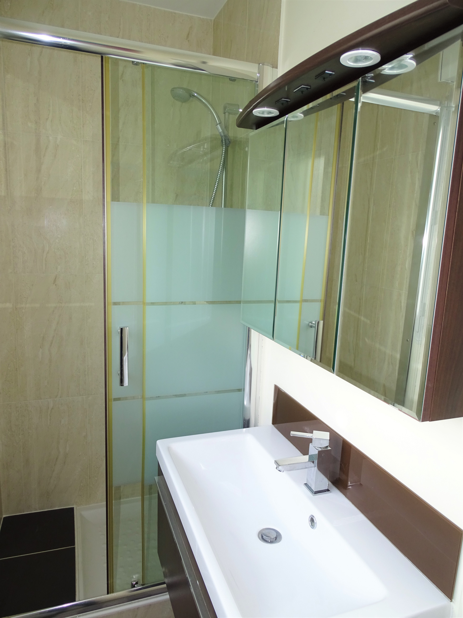 PETITE SALLE D’EAU : Carrelage au sol, lavabo, douche. CHAMBRE 2 : parquet au sol, un lit de 140 et 2 lits gigognes de 90 , TV. - WC : communicants avec la chambre.