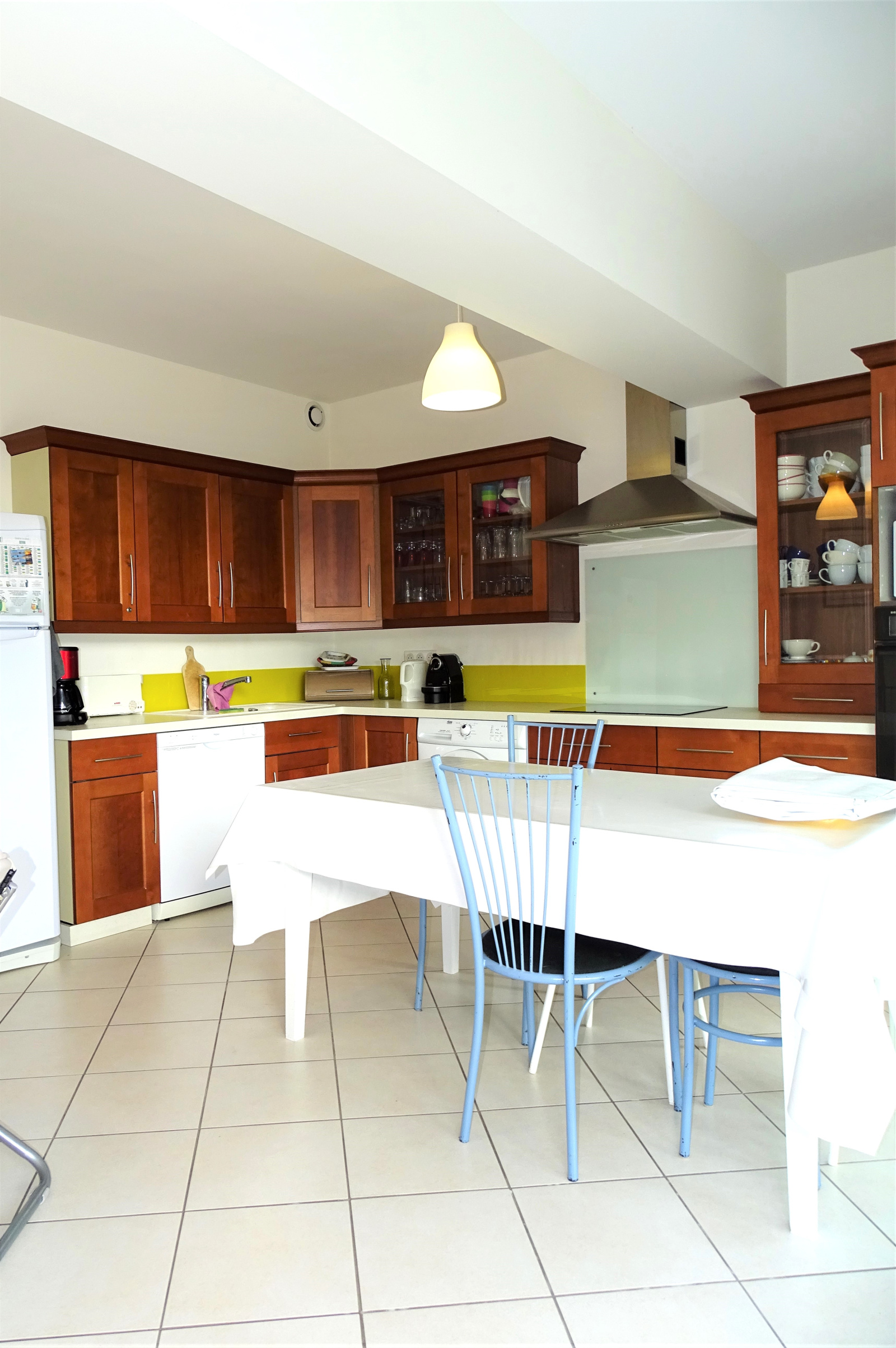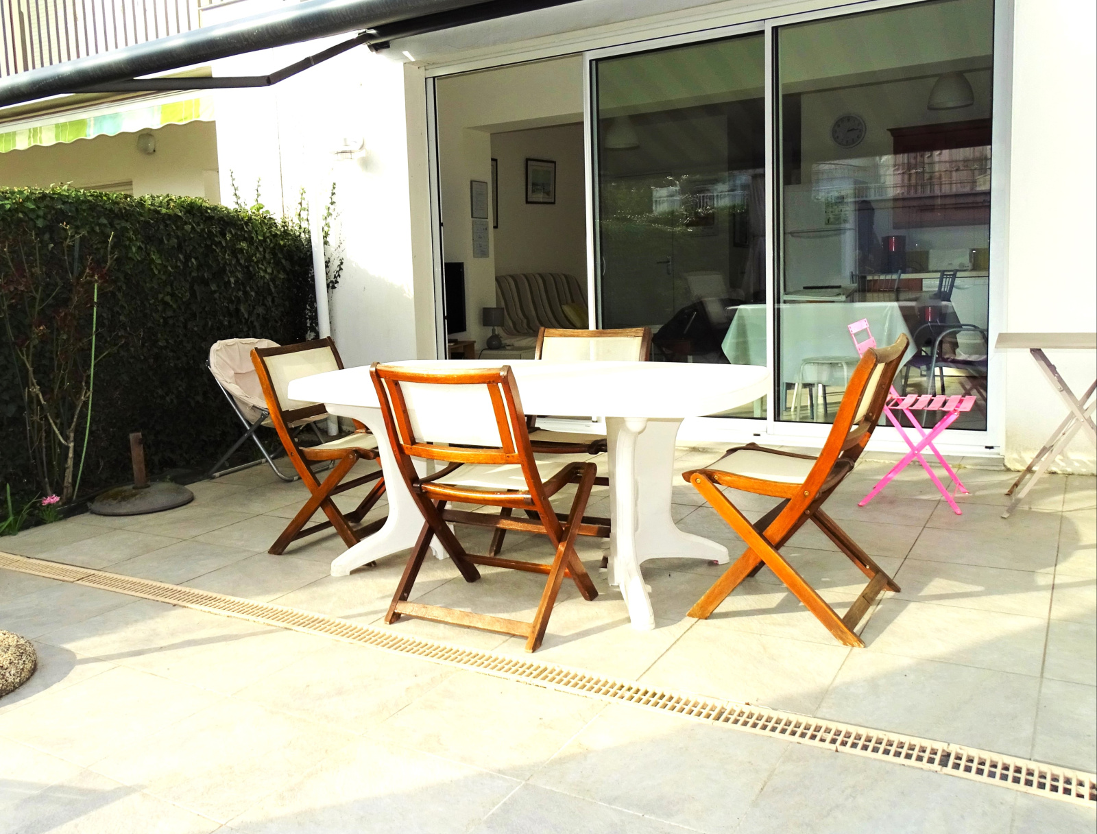 TERRASSE avec salon de jardin , plancha , chaises longues, parasol + petit coin jardinet idéal pour un séjour en famille !
