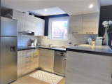 Une CUISINE ouverte très bien équipée de 8.33 m2 avec un placard fermé : Carrelage au sol, micro-ondes, four, lave-vaisselle, hotte , évier 1 bac, plaque 3 feux induction, réfrigérateur congélateur. ,