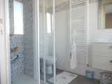 SALLE EAU : stratifié au sol, douche, vasque, wc.
