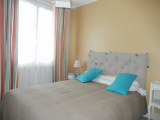 CHAMBRE 1 avec balcon de 13.50 m2 : stratifié au sol, placard penderie, TV, un lit de 140. , Cette chambre dispose de sa salle d’eau privative avec douche italienne , vasque , wc et sèche serviette lino au sol.