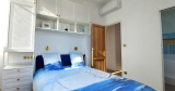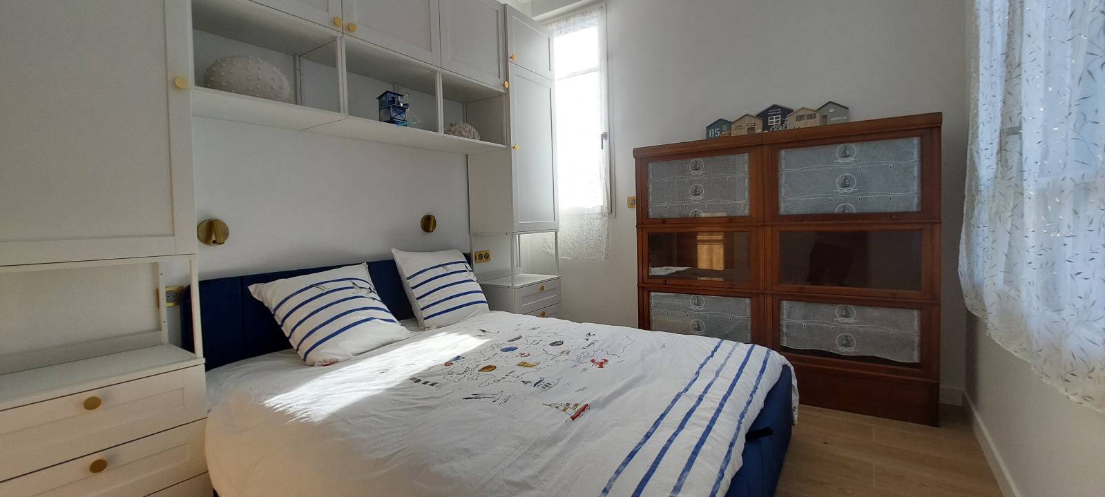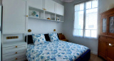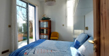 Deux chambres avec lit de 160 + placard et une quatrième chambre avec lit de 160 + placard et salle de bains avec baignoire sabot (petite baignoire).