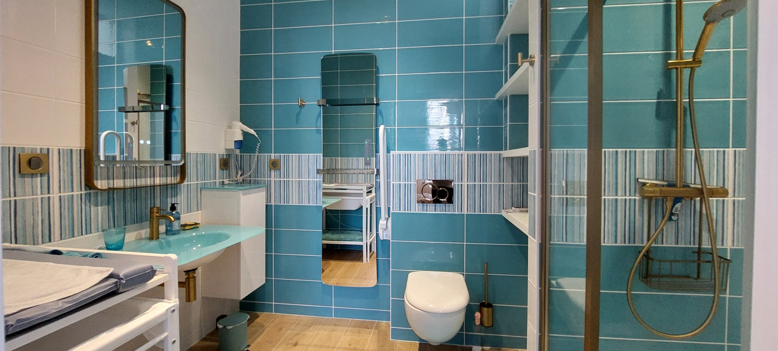 Une salle d’eau indépendante avec WC, un troisième WC séparé.