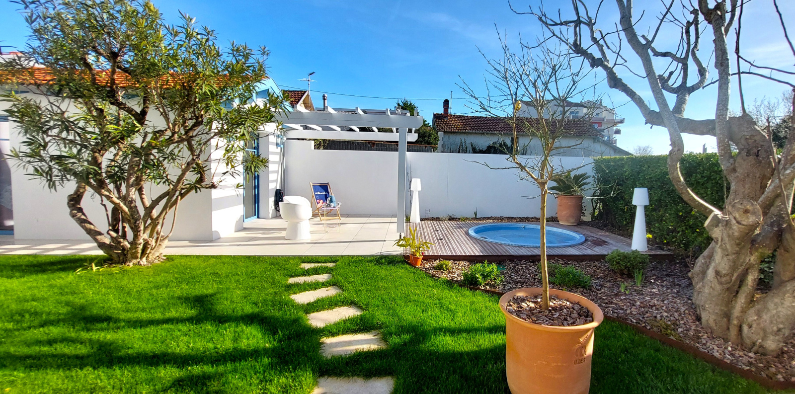 Place de parking privative, terrasse avec beau jardin salon de jardin (livraison en avril) et un jacuzzi !
