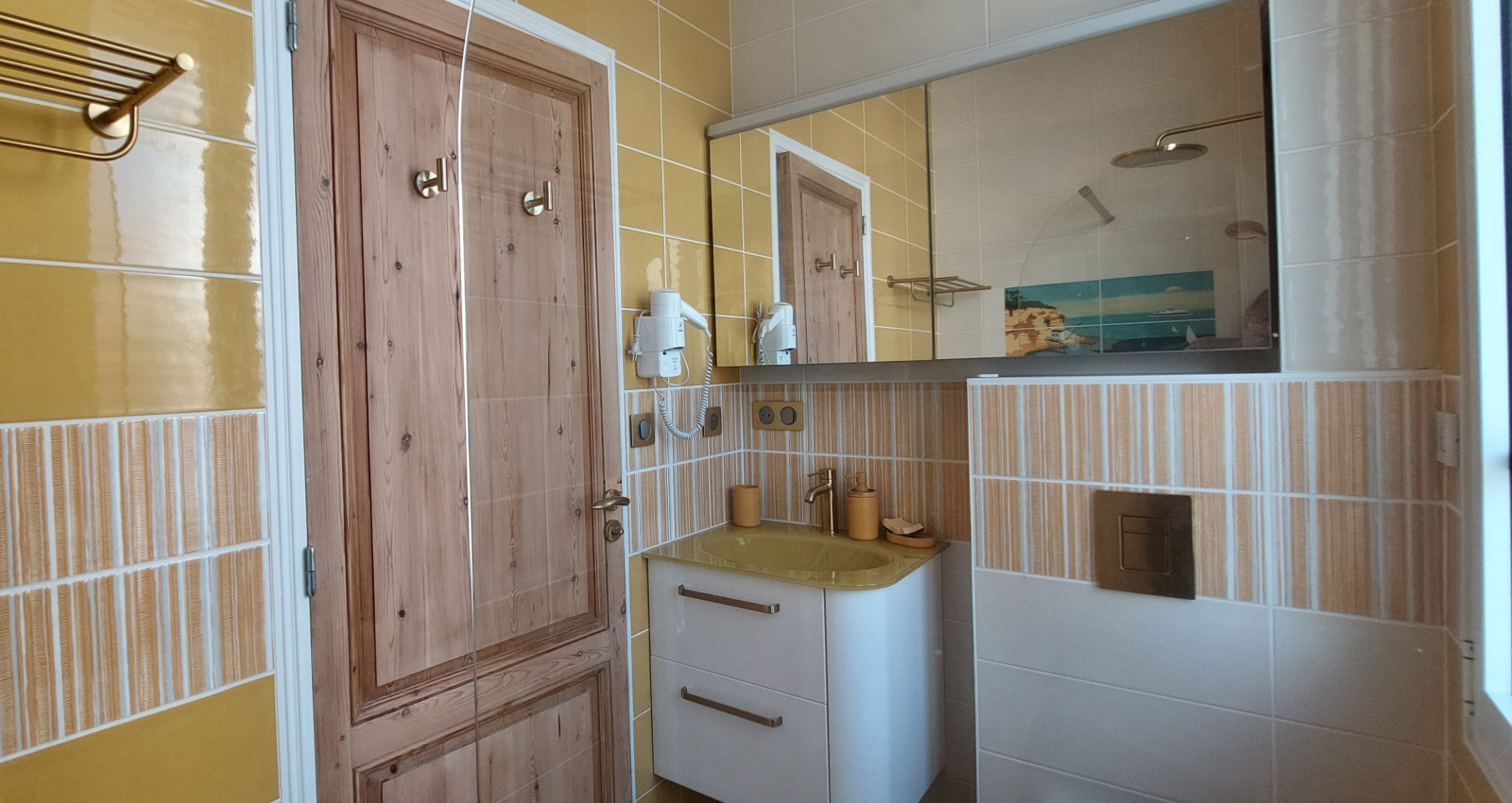 Ce logement vous offre : Une entrée, Une première chambre avec lit de 160, placard penderie, salle d’eau avec douche, WC, sèche serviette.