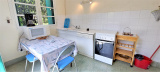 REZ DE CHAUSSEE: ENTREE : dans SEJOUR carrelage au sol 25 m2 env. coin repas + coin salon avec Clic clac. TELEVISION ,CUISINE : (7 m2), évier , cuisinière 4 feux et four gaz de ville, micro-ondes, réfrigérateur, lave-vaisselle. Porte avec accès au jardin avec quelques marches. SALLE D’EAU :(9m2), lavabo, douche, lave-linge. WC : séparés.