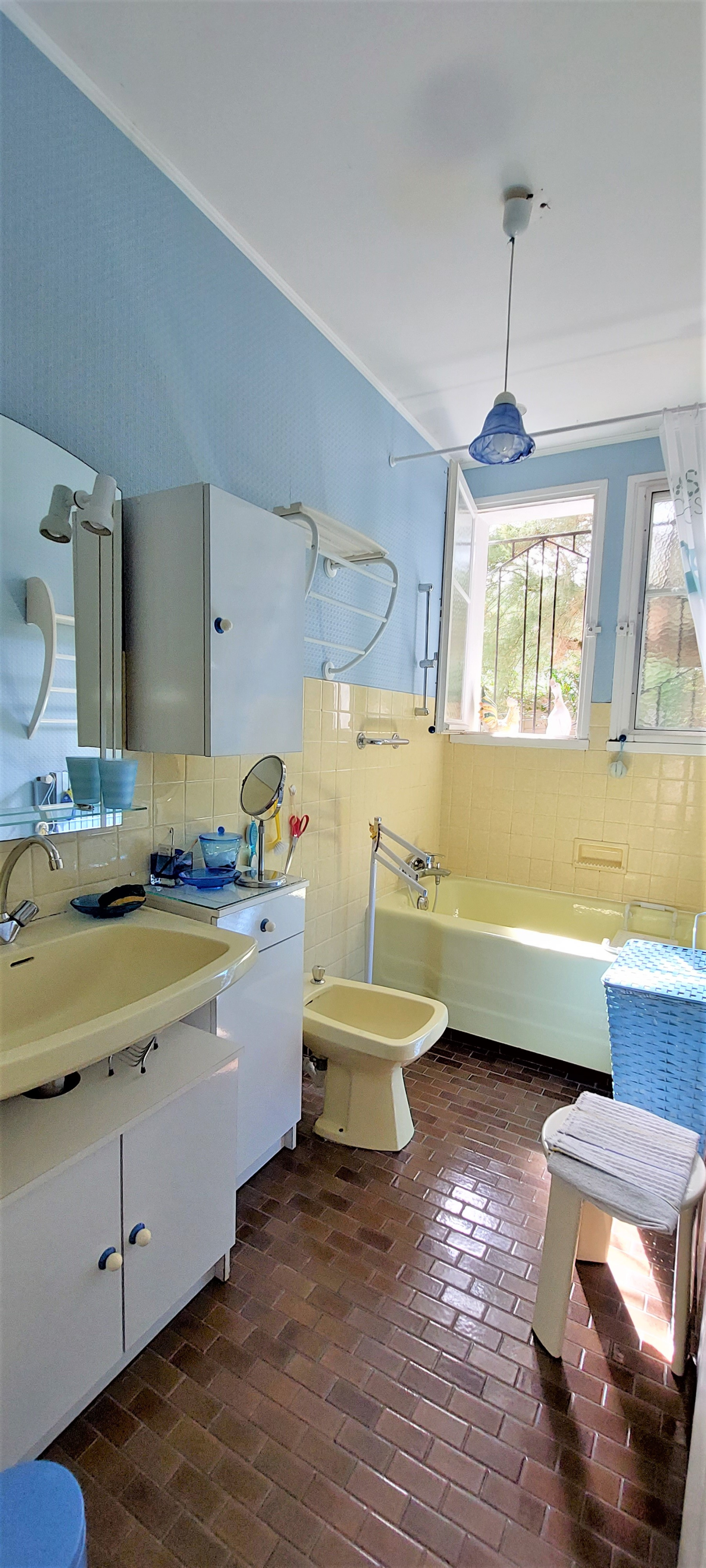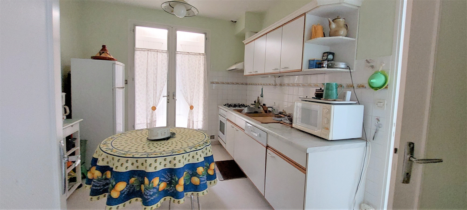 REF : 405 - 6/8 personnes - , ,Adorable MAISON Plain Pieds, bien tenue située dans un quartier calme, à env 700 m du marché central de Royan et env 1400m de la plage de la Grande Conche à Royan. , ,ENTREE : dalles pvc au sol ,SEJOUR ( 20 m2 sud est ) dalle pvc au sol, TV, coin repas, banquette BZ 140, ouvrant sur balcon (7 m2) ,CUISINE:(11,5 m2) : dalle pvc au sol, évier, réfrigérateur, congélateur, cuisinière 4 feux gaz, four électrique, lave vaisselle, lave linge. Hotte , micro ondes porte fenêtre sur terrasse et jardin arrière , ,CHAMBRE 1 : (12,5 m2 ouest) parquet au sol, 1 lit 140, placard. ,CHAMBRE 2 : (10,5 m2 est) parquet au sol,1lit 140,placard penderie, commode. ,CHAMBRE 3 : (ouest 10,5 m2 )(accès par garage,) parquet au sol, 2 lits 90 armoire penderie, , ,SALLE DE BAINS: carrelage au sol, lavabo, baignoire. ,WC : indépendants , ,Jardin (100m2 env.) avec salon de jardin. ,GARAGE , ,