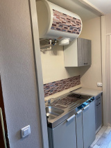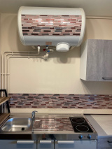 UNE ENTREE - PIECE PRINCIPALE composée d'un sol en stratifié avec lit meuble de 140 pouvant se transformer en canapé. Une table pour le repas + TV - UNE KITCHENETTE composée d'une plaque à induction 2 feux, un micro-ondes, un évier 1 bac, cafetière et bouilloire - UNE SALLE D'EAU avec carrelage au sol, douche, WC, lave-linge et sèche serviette.