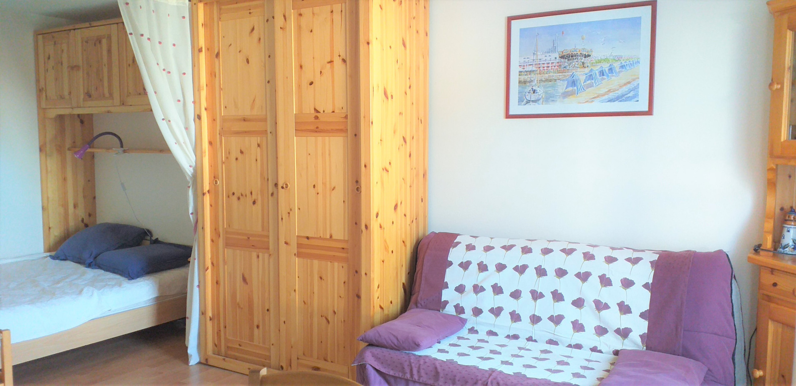 VENDU Appartement en dernier étage d'une petite copropriété composé: d'un séjour salon coin nuit, Kitchenette équipée, salle d'eau wc, jolie terrasse, cave.