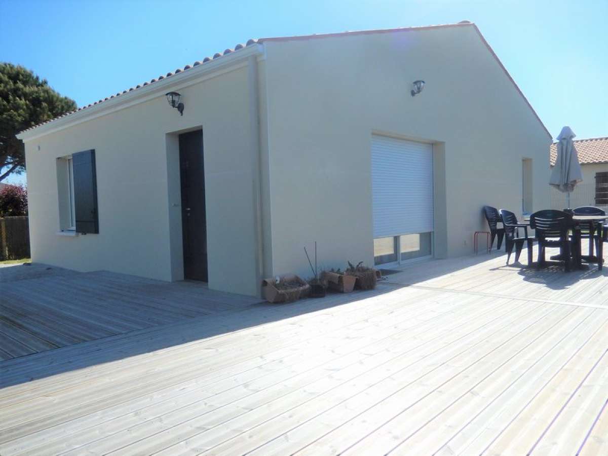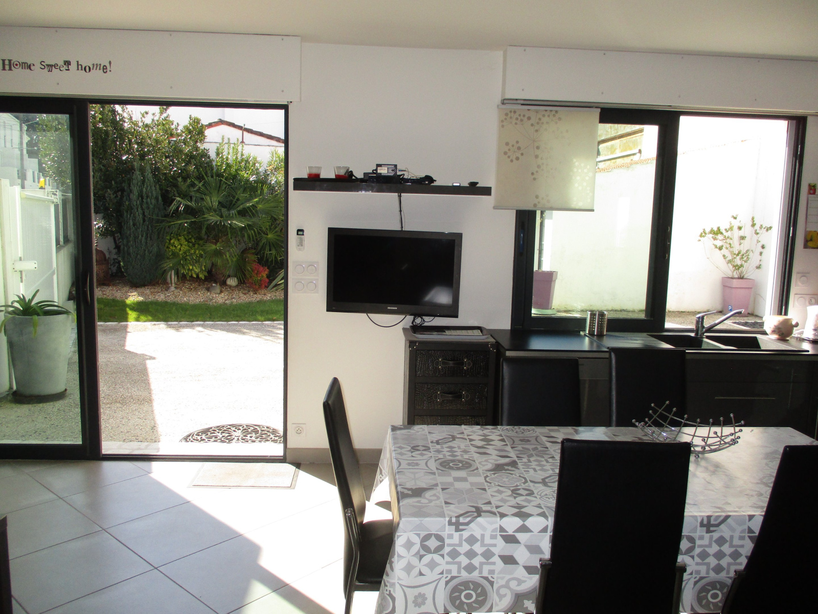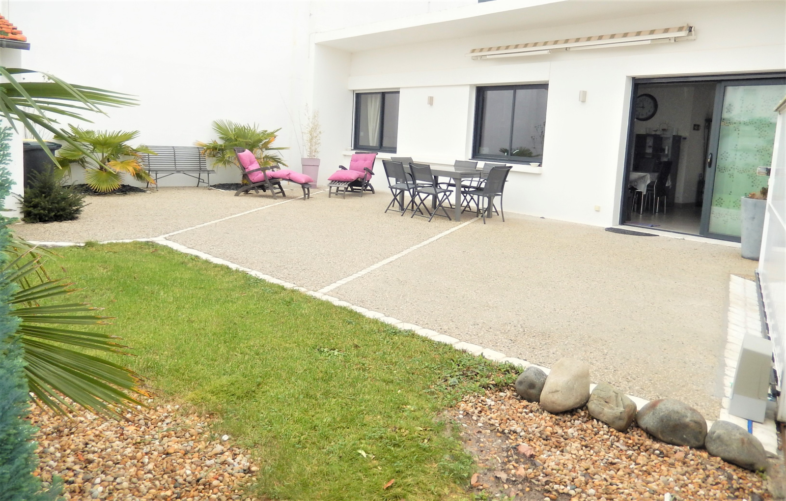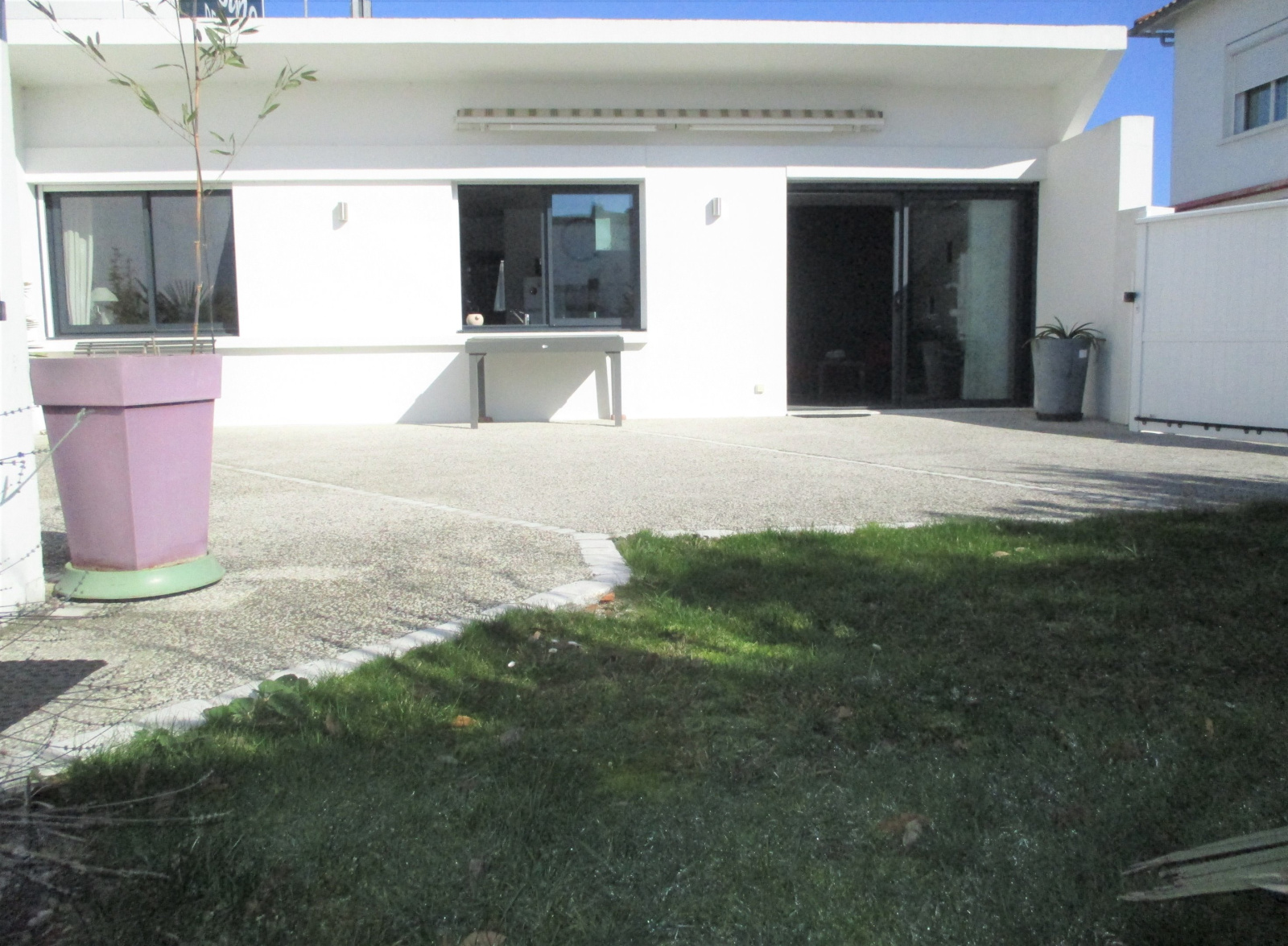 VENDU .Maison de Ville de Plain-Pied composée: d'un séjour salon donnant sur une terrasse plein sud, une cuisine équipée ouverte, 3 chambres, 2 salles d'eau, wc, dépendance, jardin, entierement rénovée, commerces plage et gare à Pied.