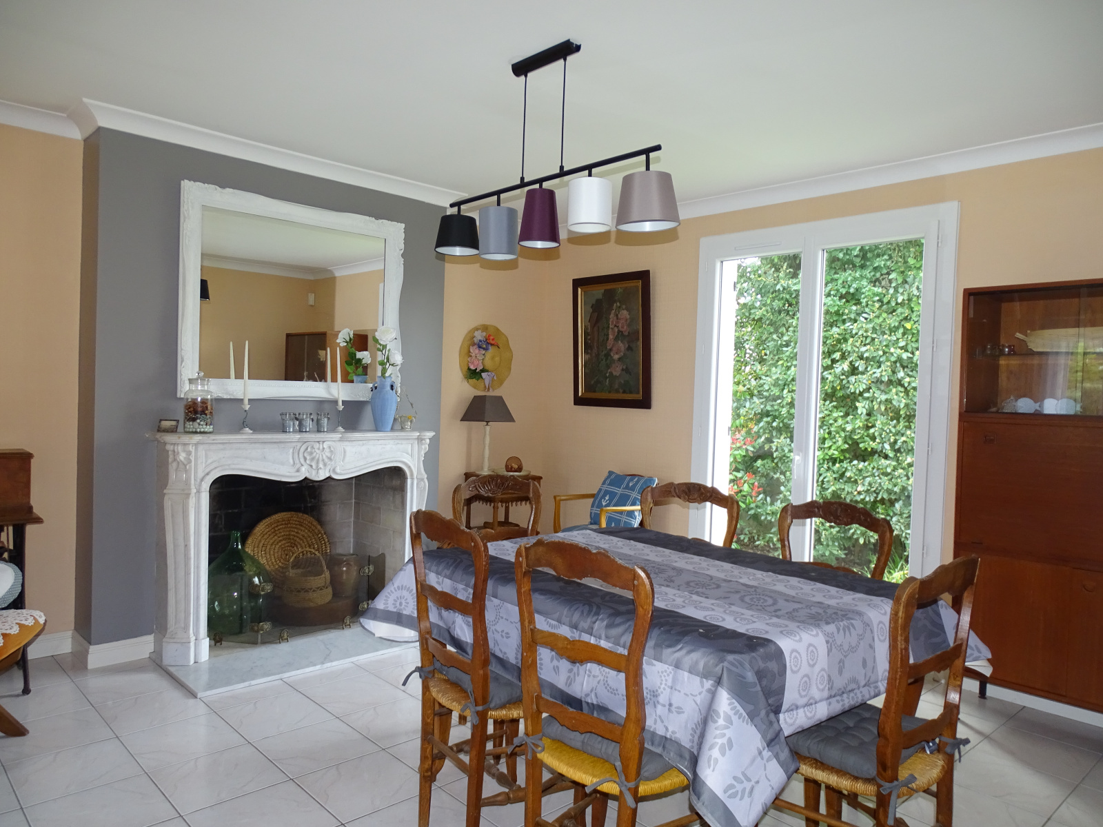 D'une entrée, un séjour salon traversant avec cheminée, une cuisine séparée aménagée, un cellier, 4 chambres, une salle de bains, une salle d'eau, 2 wc, un garage, une cave, joli jardin arboré.